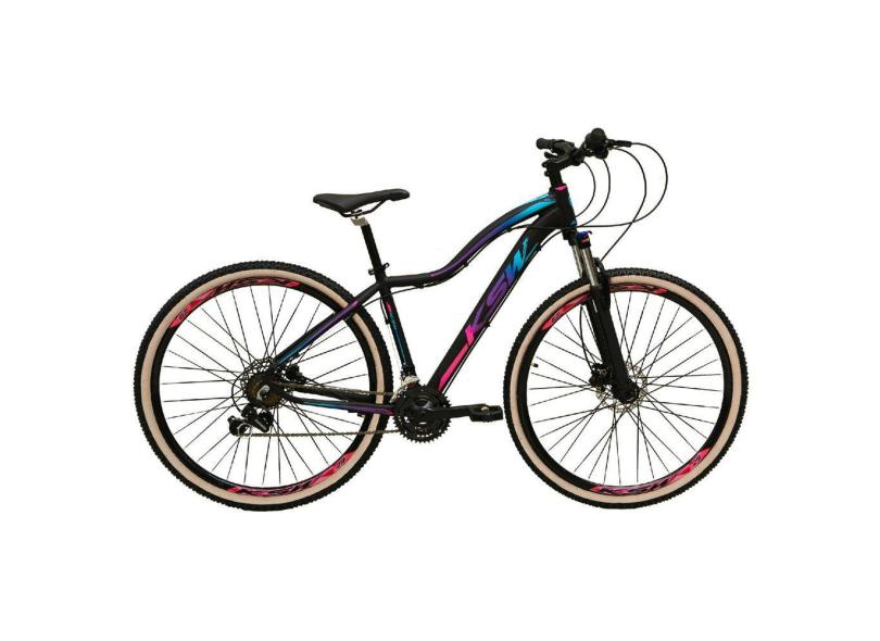 Bicicleta Aro 29 Ksw Mwza 24v K7 Câmbios Shimano Freio Hidráulico Garfo com Trava Pneu Faixa Bege - Preto/Pink/Azul