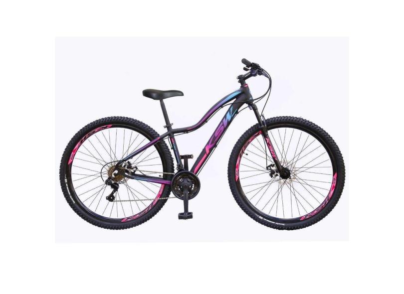 Bicicleta Aro 29 Ksw Mwza Feminina 21v Freio A Disco Suspensão Mountain Bike Alumínio - Preto/Pink/Azul