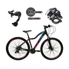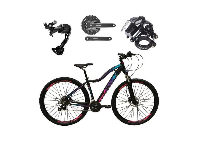Bicicleta Aro 29 Ksw Mwza Feminina Câmbio Shimano Alívio E Altus 27v F/hidráulico Garfo Trava - Preto/pink/azul Tam.15