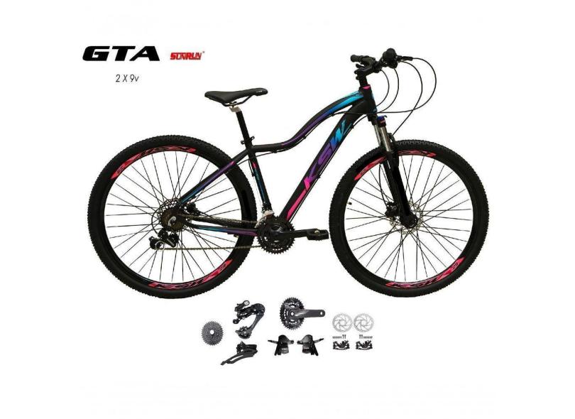 O menor preço encontrado no Brasil para Bicicleta Aro 29 Ksw Mwza Feminina Kit 2x9 Gta Sunrun Disco K7 11/36 Pedivela 24/38d Com Trava - Preto/pink/azul Tam.17 atualmente é R$ 1.390,00.