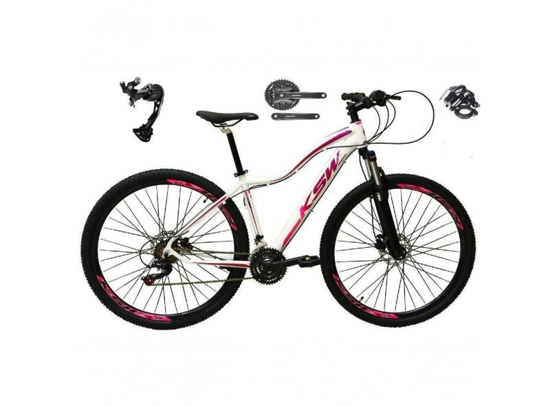 Bicicleta Aro 29 Ksw Mwza Feminina Shimano Alívio E Altus 27v F/hidráulico Garfo Trava - Branco/pink/violeta Tam.15