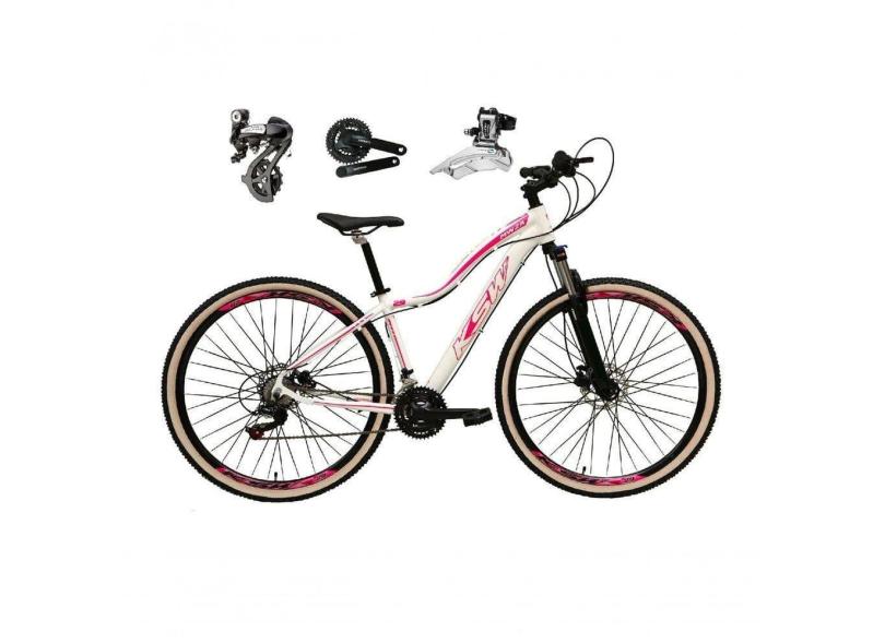 Bicicleta Aro 29 Ksw Mwza Shimano Altus 24v Frio Hidráulico Garfo Trava Pneu Bege - Branco/rosa Tam.17