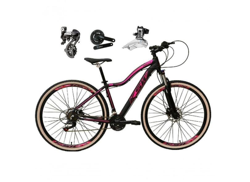 Bicicleta Aro 29 Ksw Mwza Shimano Altus 24v Frio Hidráulico Garfo Trava Pneu Bege - Preto/rosa Tam.17
