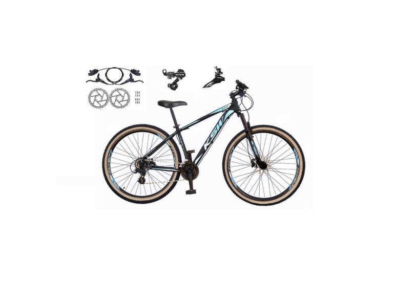 Bicicleta aro 29 Ksw Xlt 24v Câmbios Shimano Freios Hidráulicos Garfo com Suspensão Pneu Faixa Bege - Preto/Azul