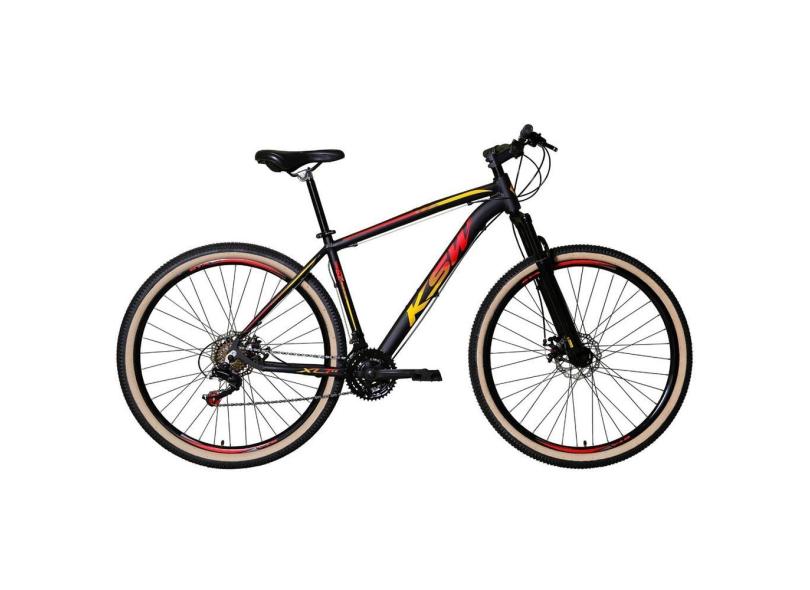 Bicicleta Aro 29 Ksw Xlt 24v Freio a Disco Garfo Com Suspensão Mtb 29 Alumínio Pneu com Faixa Bege - Preto/Vermelho/Amarelo