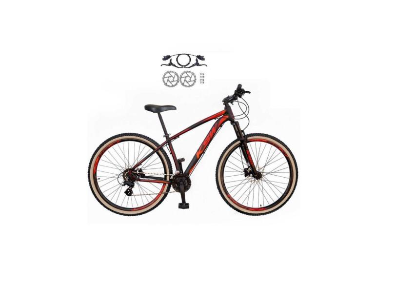 Bicicleta Aro 29 Ksw Xlt 24v Freios a Disco Hidráulicos Garfo Suspensão Pneu com Faixa Bege - Preto/Vermelho/Laranja