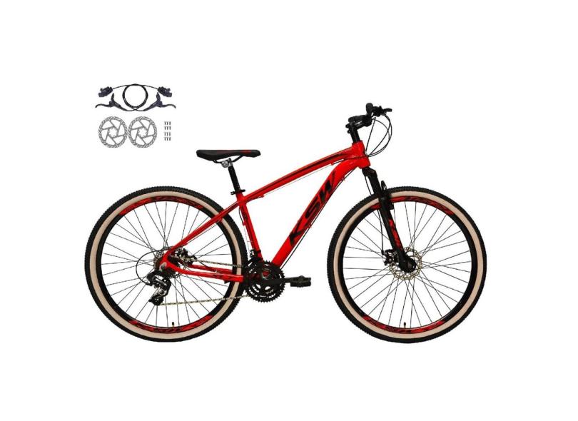 O menor preço encontrado no Brasil para Bicicleta Aro 29 Ksw Xlt 24v Freios a Disco Hidráulicos Garfo Suspensão Pneu com Faixa Bege - Vermelho atualmente é R$ 1.174,00.