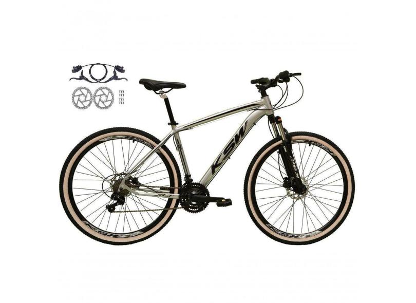 Bicicleta Aro 29 Ksw Xlt 24v Freios Disco Hidráulicos Garfo Suspensão Pneu Faixa - Prata Tam.15