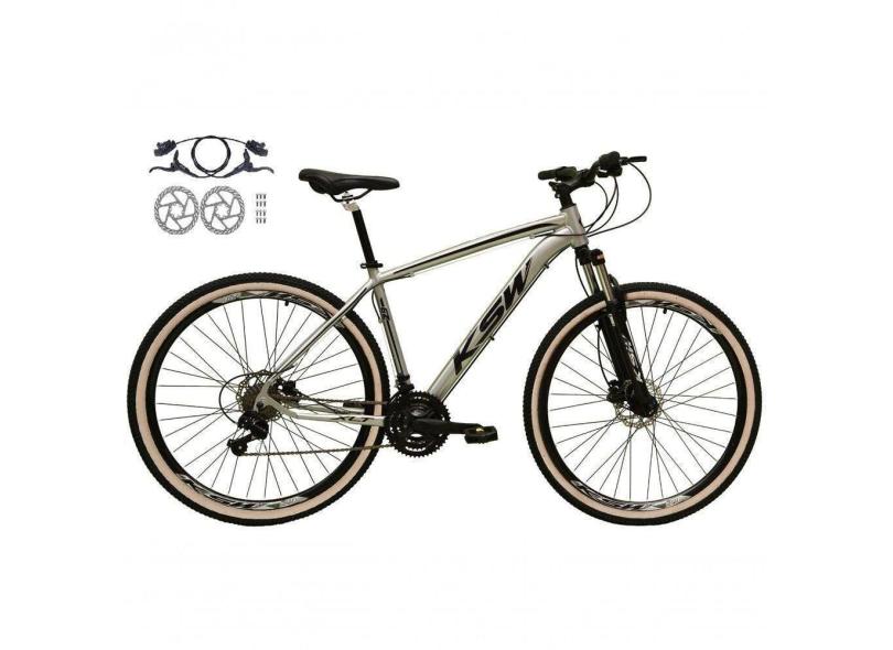 O menor preço encontrado no Brasil para Bicicleta Aro 29 Ksw Xlt 24v Freios Disco Hidráulicos Garfo Suspensão Pneu Faixa - Prata Tam.17 atualmente é R$ 1.192,50.