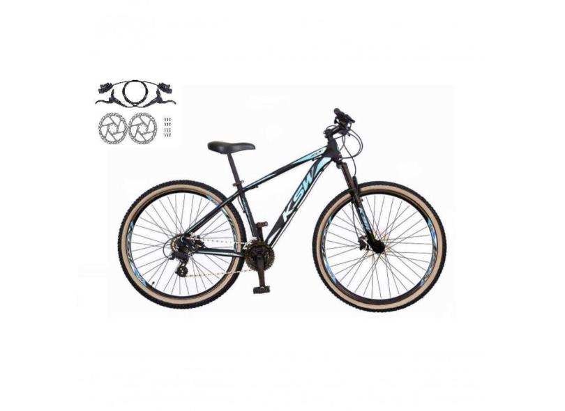 Bicicleta Aro 29 Ksw Xlt 24v Freios Disco Hidráulicos Garfo Suspensão Pneu Faixa - Preto/azul Tam.17