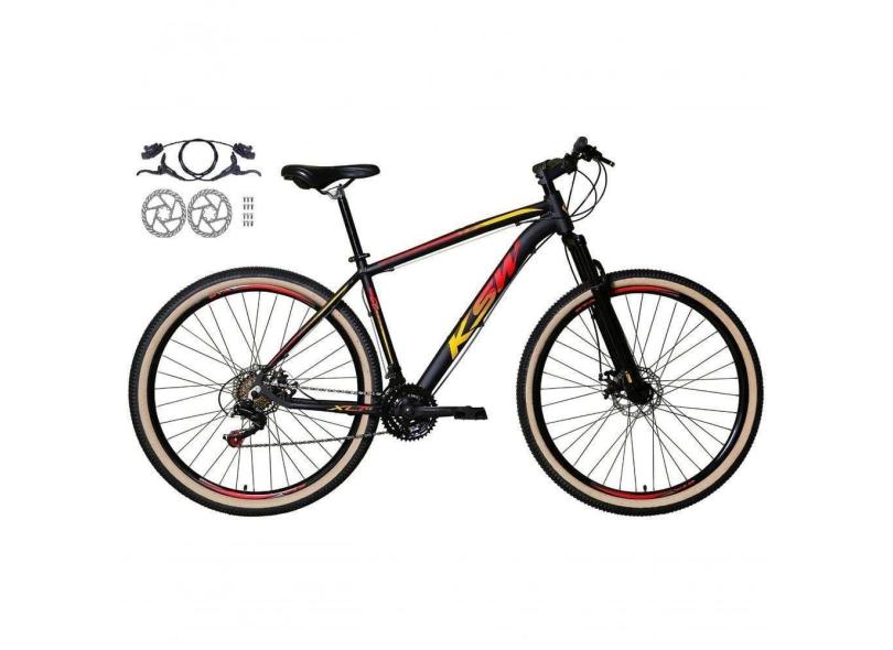 Bicicleta Aro 29 Ksw Xlt 24v Freios Disco Hidráulicos Garfo Suspensão Pneu Faixa - Preto/vermelho/amarelo Tam.21