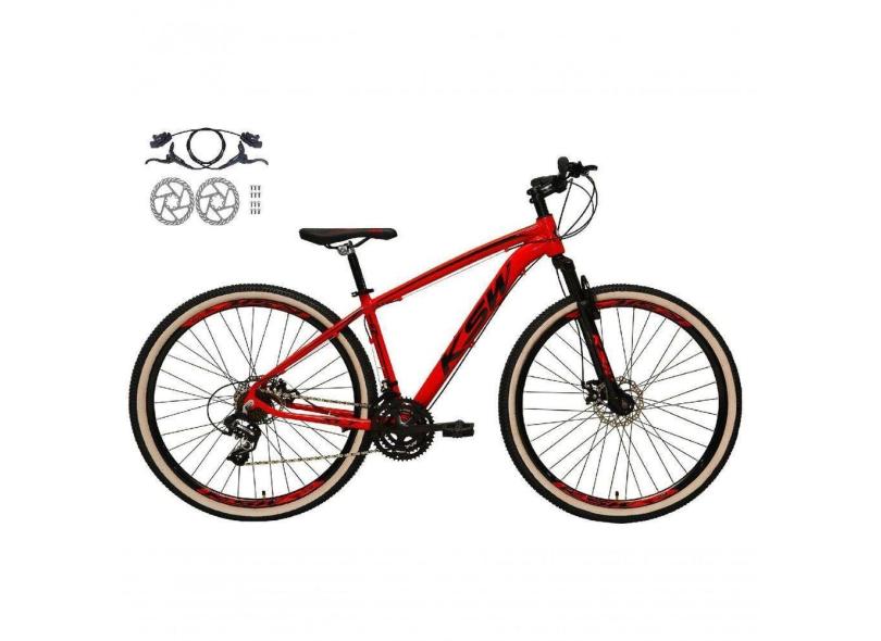 Bicicleta Aro 29 Ksw Xlt 24v Freios Disco Hidráulicos Garfo Suspensão Pneu Faixa - Vermelho Tam.17