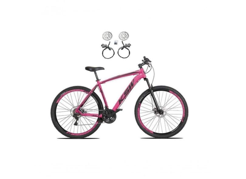 O menor preço encontrado no Brasil para Bicicleta Aro 29 Ksw Xlt 24v Freios Disco Hidráulicos Garfo Suspensão - Rosa Tam.15 atualmente é R$ 924,80.