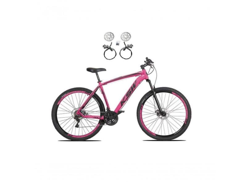 O menor preço encontrado no Brasil para Bicicleta Aro 29 Ksw Xlt 24v Freios Disco Hidráulicos Garfo Suspensão - Rosa Tam.17 atualmente é R$ 924,80.