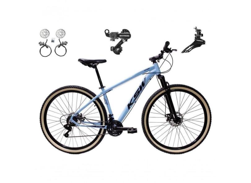 Bicicleta Aro 29 Ksw Xlt 24v K7 Câmbios Shimano Freio Hidráulico Garfo Trava Pneu Faixa - Azul Tam.17
