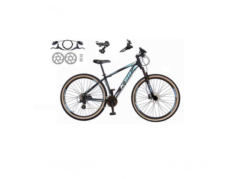 Bicicleta Aro 29 Ksw Xlt 24v K7 Câmbios Shimano Freio Hidráulico Garfo Trava Pneu Faixa - Preto/azul Tam.21