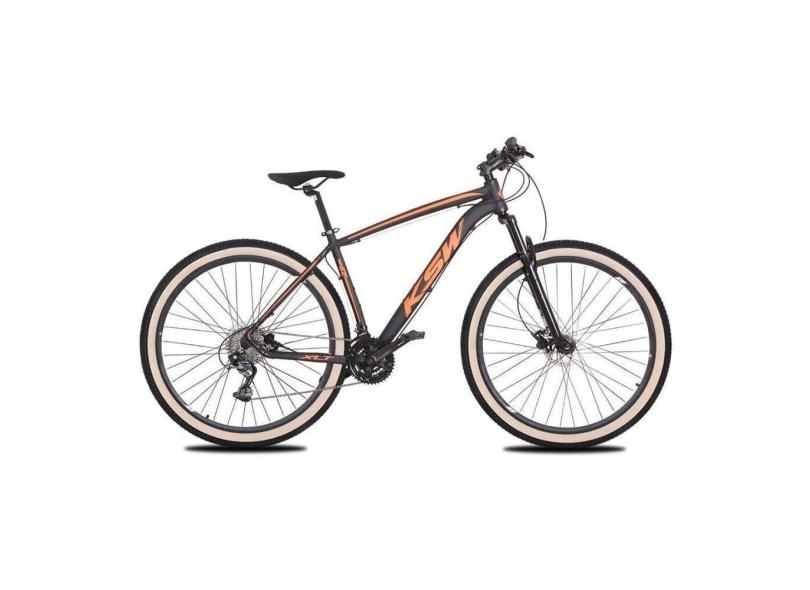 Bicicleta Aro 29 Ksw Xlt 24v K7 Câmbios Shimano Freio Hidráulico Garfo Trava Pneu Faixa - Preto/laranja Tam.21