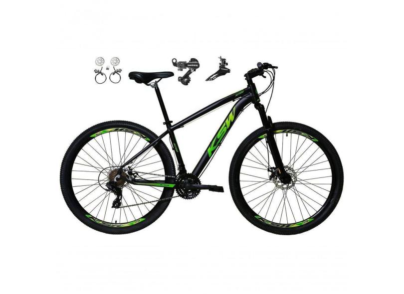 Bicicleta Aro 29 Ksw Xlt 24v K7 Câmbios Shimano Freio Hidráulico Garfo Trava - Preto/verde Tam.19