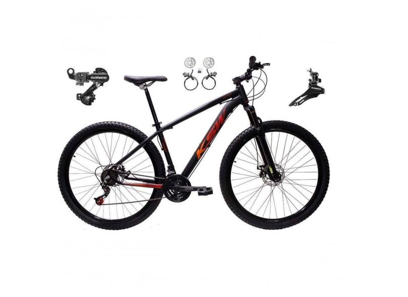 Bicicleta Aro 29 Ksw Xlt 24v K7 Câmbios Shimano Freio Hidráulico Garfo Trava - Preto/vermelho/laranja Tam.17