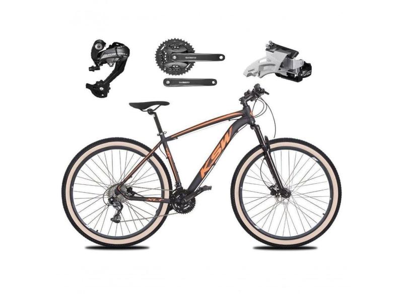 Bicicleta Aro 29 Ksw Xlt 27v Câmbios Shimano Altus Freios Hidráulicos Garfo Trava Pneu Faixa - Preto/laranja Tam.19