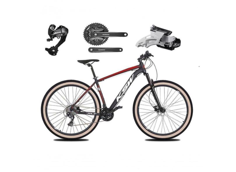 Bicicleta Aro 29 Ksw Xlt 27v Câmbios Shimano Altus Freios Hidráulicos Garfo Trava Pneu Faixa -preto/vermelho/branco T.15