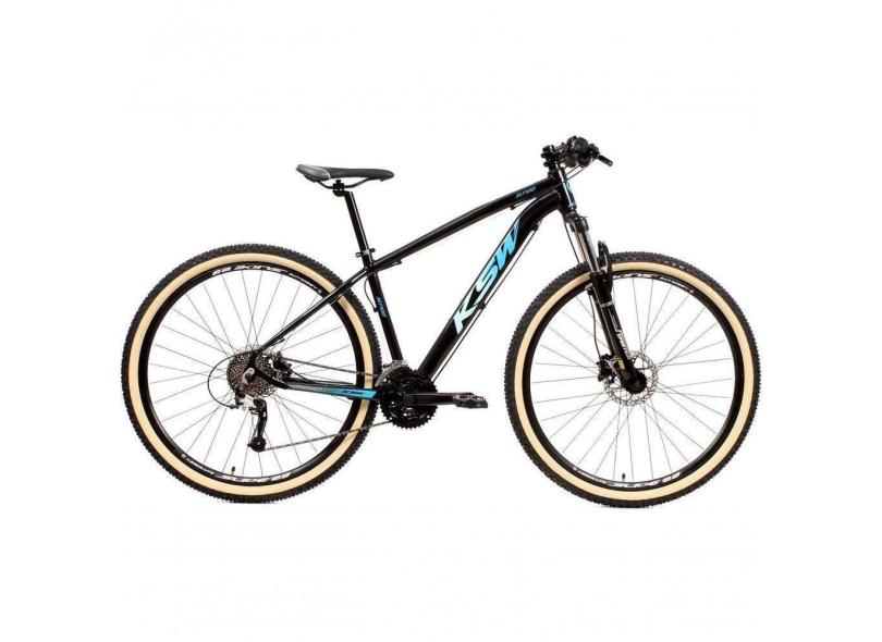 Bicicleta Aro 29 Ksw Xlt 27v Freio Hidráulico K7 Garfo Trava Pneu Faixa - Preto/azul Tam.21