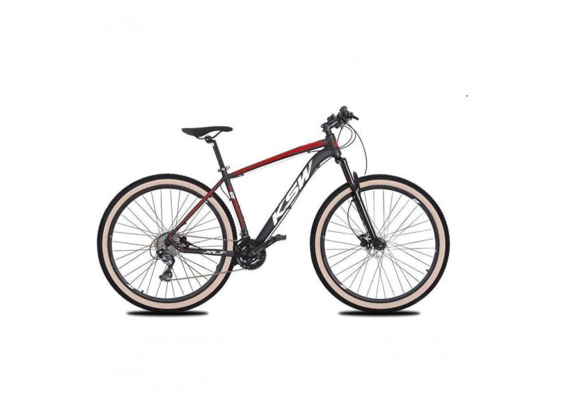 Bicicleta Aro 29 Ksw Xlt 27v Freio Hidráulico K7 Garfo Trava Pneu Faixa - Preto/vermelho/branco Tam.19