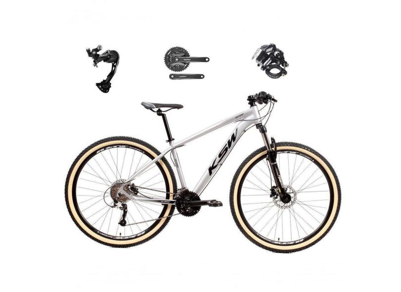 Bicicleta Aro 29 Ksw Xlt Alívio E Altus 27v Freio Hidráulico Garfo Trava Pneu Faixa - Prata Tam.19