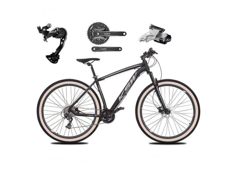 Bicicleta Aro 29 Ksw Xlt Alívio E Altus 27v Freio Hidráulico Garfo Trava Pneu Faixa - Preto-prata Tam.21