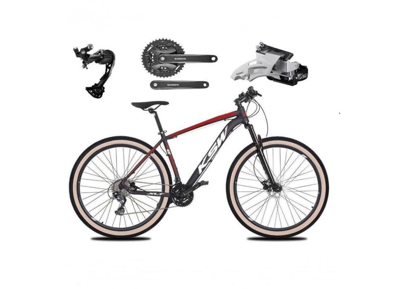 Bicicleta Aro 29 Ksw Xlt Alívio E Altus 27v Freio Hidráulico Garfo Trava Pneu Faixa - Preto-vermelho-branco Tam.15