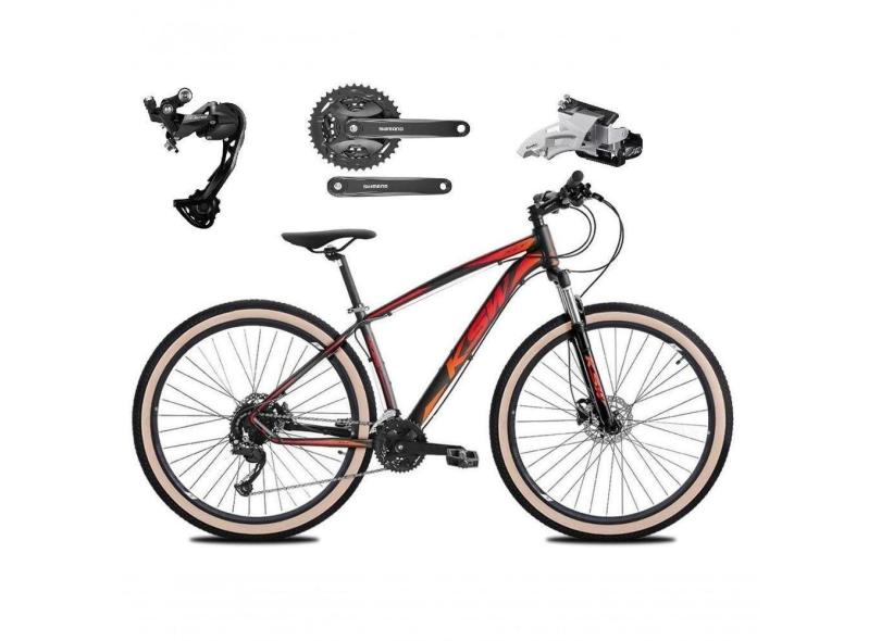 Bicicleta Aro 29 Ksw Xlt Alívio E Altus 27v Freio Hidráulico Garfo Trava Pneu Faixa - Preto-vermelho-laranja Tam.17