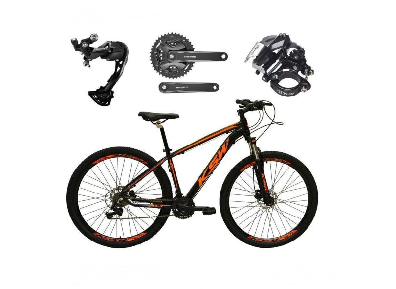 O menor preço encontrado no Brasil para Bicicleta Aro 29 Ksw Xlt Alívio E Altus 27v Freio Hidráulico Garfo Trava - Preto/laranja Tam.17 atualmente é R$ 2.028,60.
