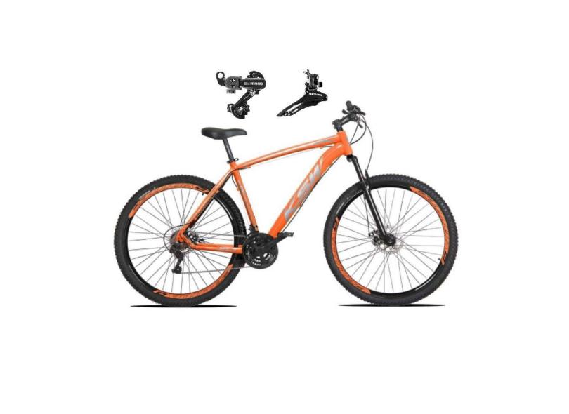 Bicicleta Aro 29 Ksw Xlt Alumínio 21v Câmbios Shimano Freio Disco Garfo Suspensão - Laranja