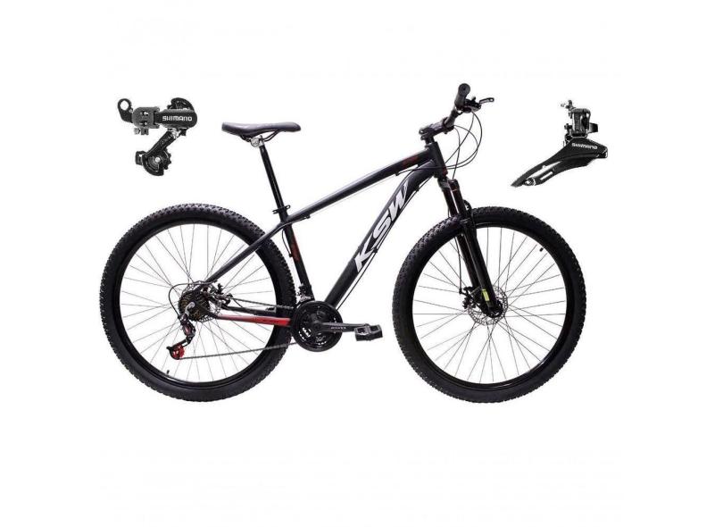 Bicicleta Aro 29 Ksw Xlt Alumínio 24v Câmbios Shimano Garfo Suspensão - Preto/vermelho/branco Tam.17