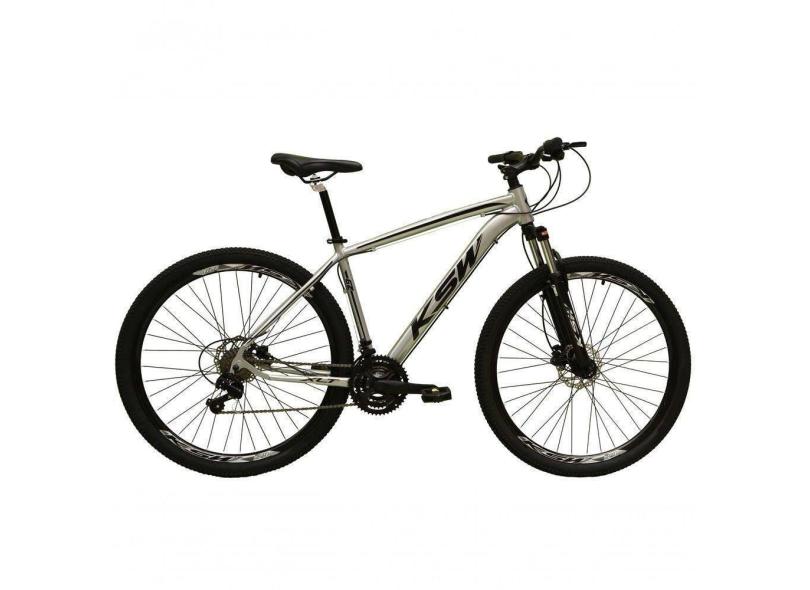 Bicicleta Aro 29 Ksw Xlt Alumínio 27v Freio Disco Mecânico Garfo Suspensão - Prata Tam.17