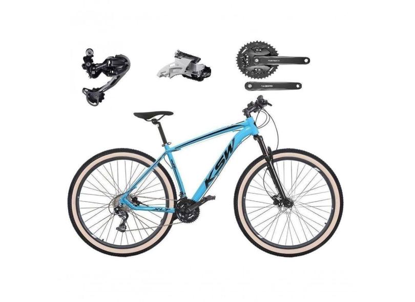 Bicicleta Aro 29 Ksw Xlt Deore E Altus 27v Freio Hidráulico Garfo Trava Pneu Faixa Bege - Azul Tam.21