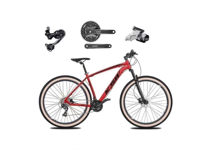 Bicicleta Aro 29 Ksw Xlt Deore E Altus 27v Freio Hidráulico Garfo Trava Pneu Faixa Bege - Vermelho Tam.17