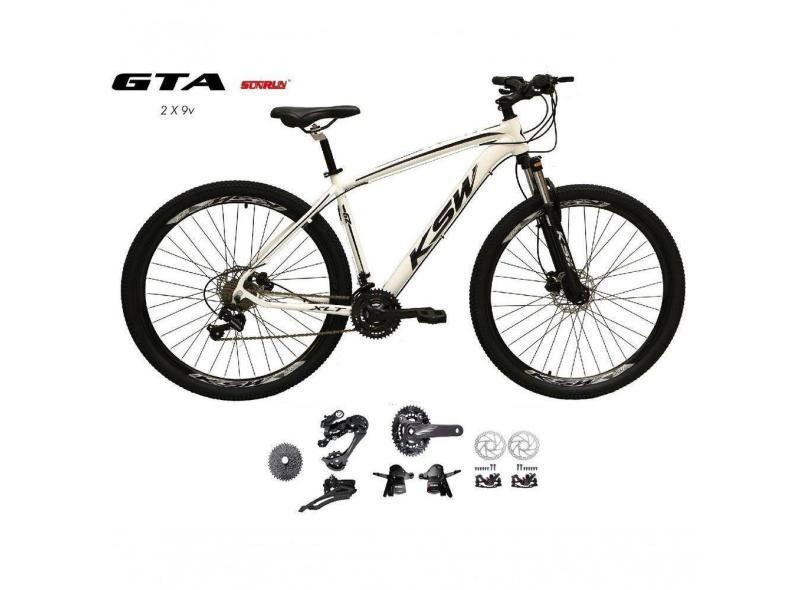 Bicicleta Aro 29 Ksw Xlt Kit 2x9 Gta Sunrun Freio Disco K7 11/36 Pedivela 24/38d Garfo Com Trava - Branco Tam.21