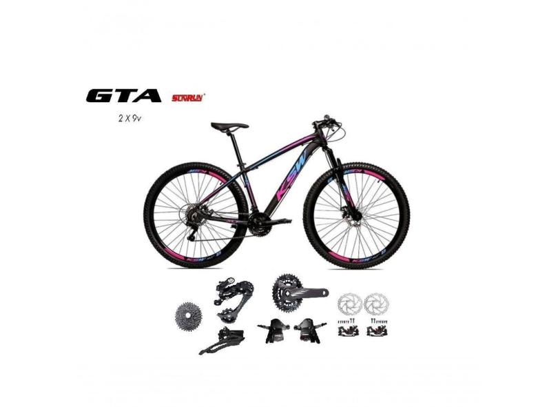 Bicicleta Aro 29 Ksw Xlt Kit 2x9 Gta Sunrun Freio Disco K7 11/36 Pedivela 24/38d Garfo Trava - Preto/pink/azul Tam.17