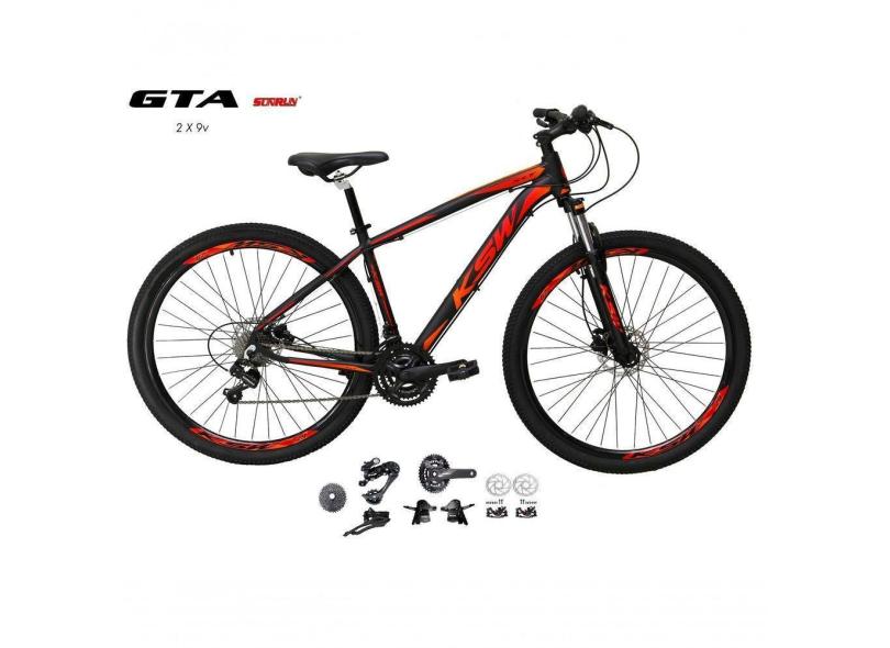 Bicicleta Aro 29 Ksw Xlt Kit 2x9 Sunrun Freio Disco K7 11/36 Pedivela 24/38d Garfo Trava - Preto/vermelho/laranja Tam.17