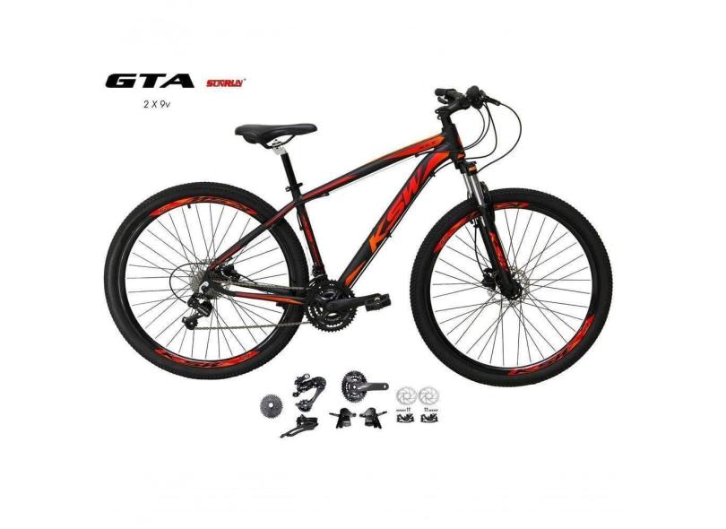 Bicicleta Aro 29 Ksw Xlt Kit 2x9 Sunrun Freio Disco K7 11/36 Pedivela 24/38d Garfo Trava - Preto/vermelho/laranja Tam.21