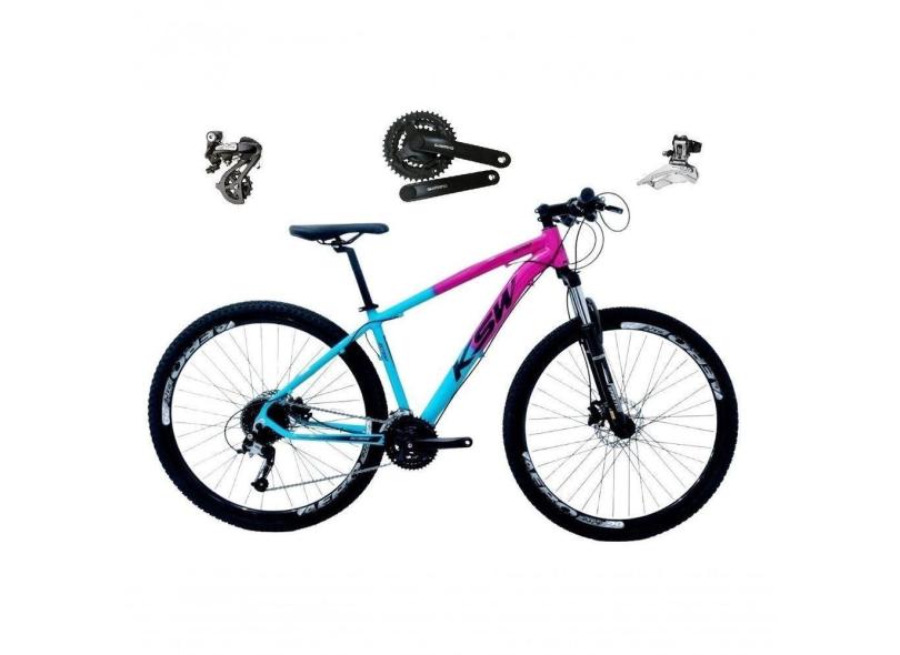 O menor preço encontrado no Brasil para Bicicleta Aro 29 Ksw Xlt Shimano Altus 24v Freio Disco Hidráulico Garfo Trava - Rosa/azul Tam.15 atualmente é R$ 1.853,10.