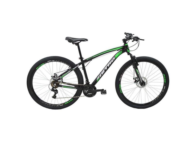 Bicicleta Aro 29 MTB Alumínio Quadro 17" Câmbio Shimano 21 velocidades Nitro Preta/Verde