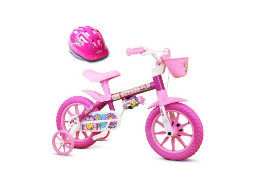 Bicicleta Criança Aro 12 Menina Flower Com Capacete Nathor