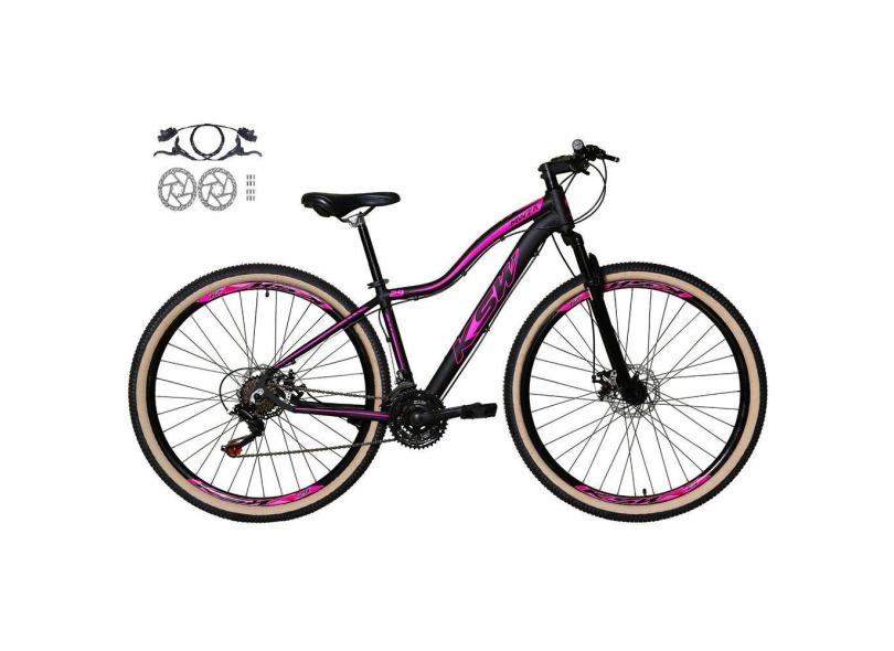 Bicicleta Feminina Aro 29 Ksw Mwza 24v Freios a Disco Hidráulicos Garfo Suspensão Pneu com Faixa Bege - Preto/Rosa