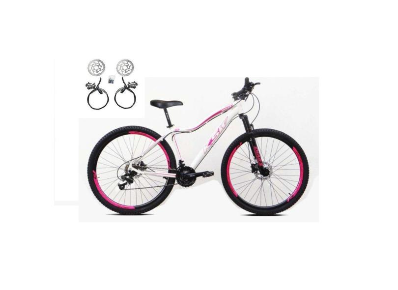 O menor preço encontrado no Brasil para Bicicleta Feminina Aro 29 Ksw Mwza 24v Freios Hidráulicos Garfo Suspensão Mtb - Branco/Rosa atualmente é R$ 1.067,40.