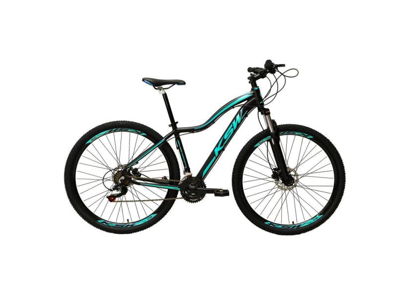 O menor preço encontrado no Brasil para Bicicleta Feminina Aro 29 Ksw Mwza 27v Freio Hidráulico K7 Garfo com Trava - Preto/Azul atualmente é R$ 1.330,20.