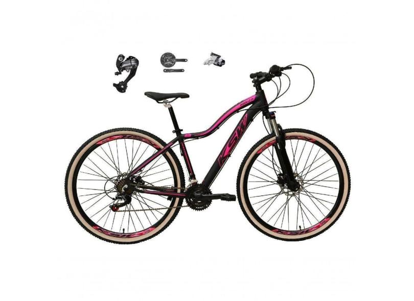 Bicicleta Feminina Aro 29 Ksw Mwza 27v Shimano Altus Freios Hidráulicos Pneu Bege - Preto-rosa Tam.17