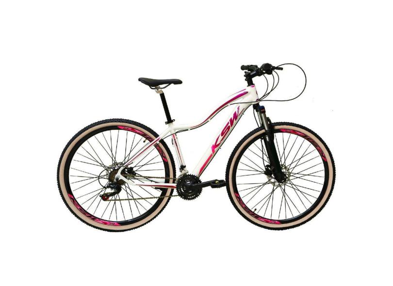 O menor preço encontrado no Brasil para Bicicleta Feminina Aro 29 Ksw Mwza Alumínio 24v Câmbios Shimano Garfo com Trava no Ombro Pneu Bege - Branco/Pink/Violeta atualmente é R$ 1.057,50.