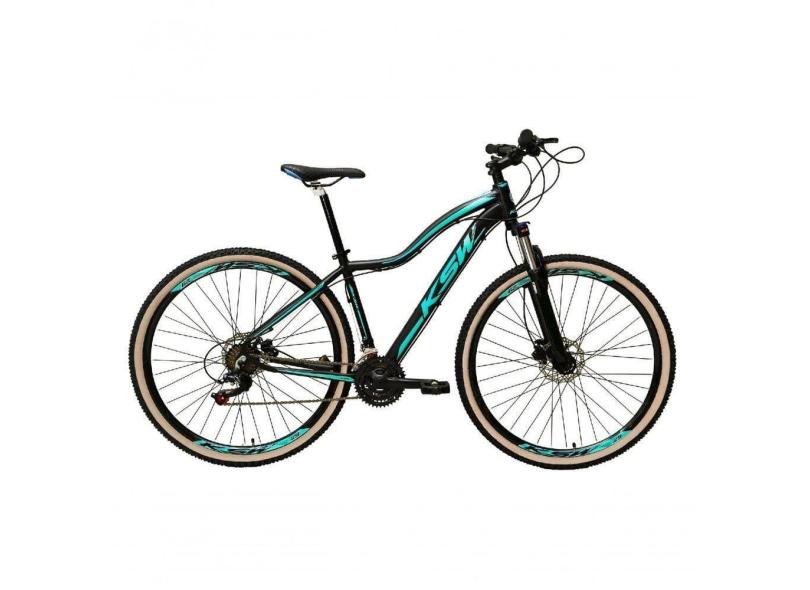 Bicicleta Feminina Aro 29 Ksw Mwza Alumínio 24v Câmbios Shimano Garfo Com Trava No Ombro - Preto/azul Tam.17